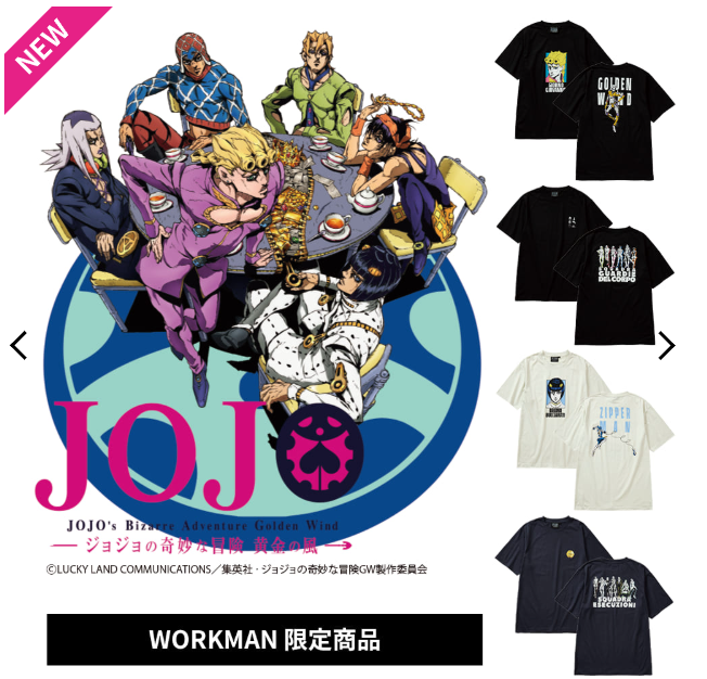 その流れの一環として、熱狂的ファンを抱える『ジョジョの奇妙な冒険』のなかでも“人気部”である「黄金の風」とのコラボTシャツが実現しました。